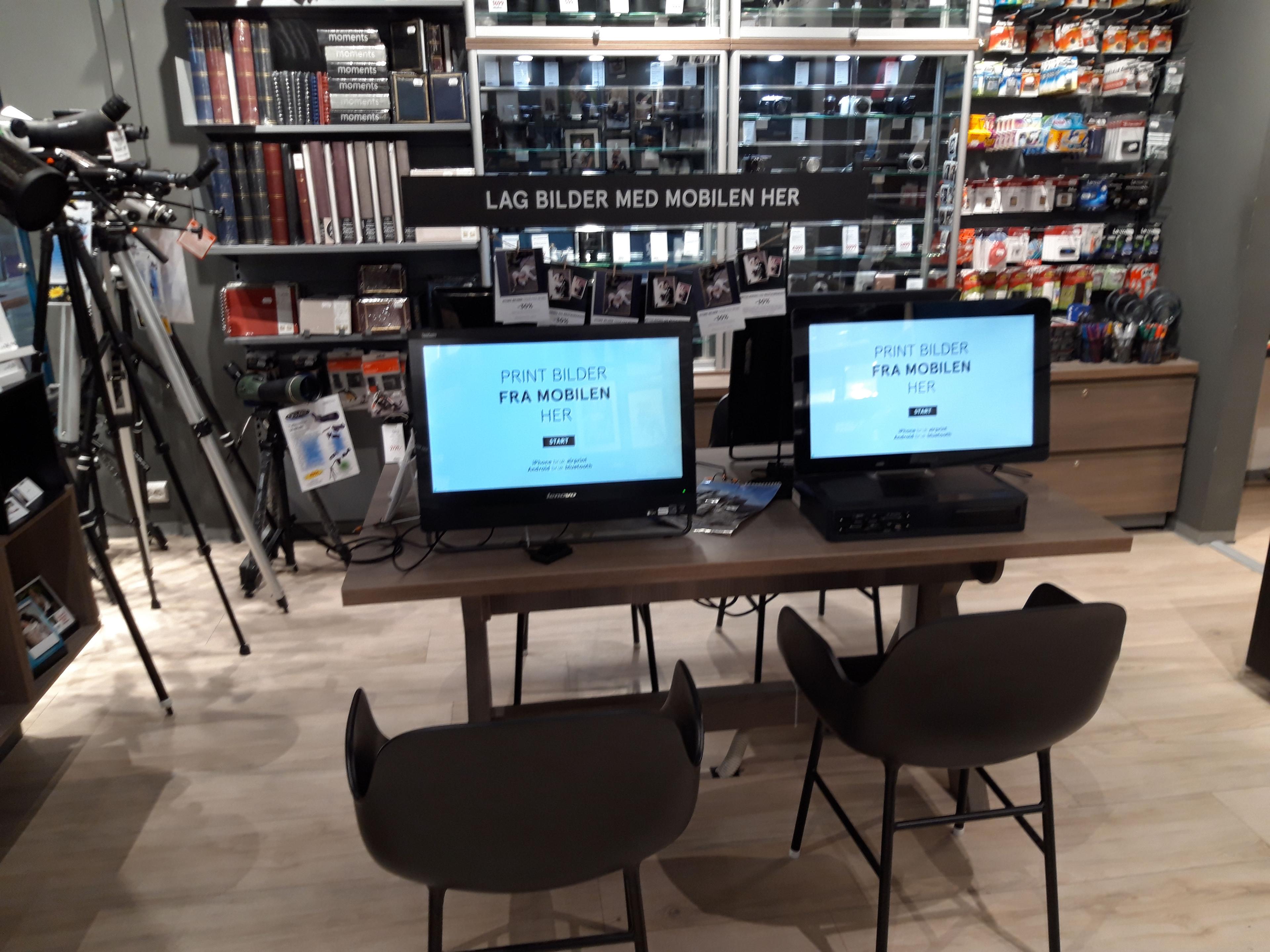 I butikken har vi bestillingskiosker der du kan bestille bildeprodukter ogsÄ av mobilbilder. Vi hjelper deg gjerne.